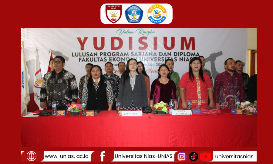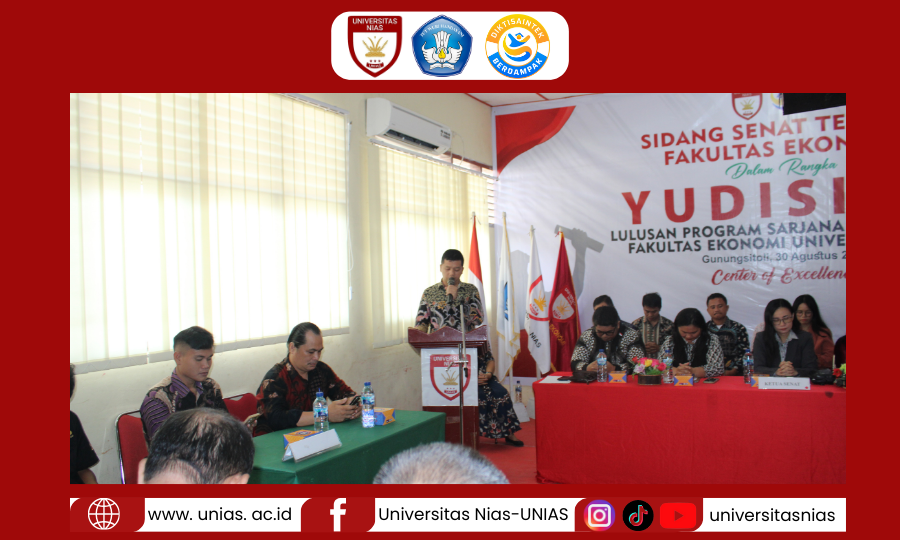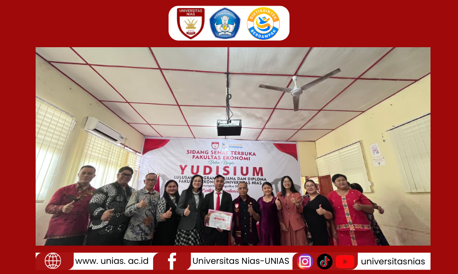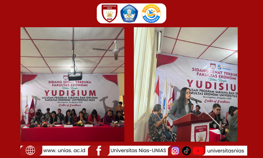 Universitas Nias.ac.id-Gunungsitoli : Fakultas Ekonomi Universitas Nias kembali menggelar sidang senat terbuka pelaksanan yudisium bagi 313 mahasiswa yang resmi menyandang gelar sarjana dan diploma. Acara yang berlangsung khidmat dan penuh suka cita ini diadakan di Aula Fakultas Ekonomi Universitas Nias, Jalan Karet No. 30, Ps.Gunungsitoli, Kecamatan Gunungsitoli, Kota Gunungsitoli. Sabtu 30 Agustus 2025, dihadiri oleh para dosen, pejabat universitas, keluarga, serta para yudisiawan dan yudisiawati.