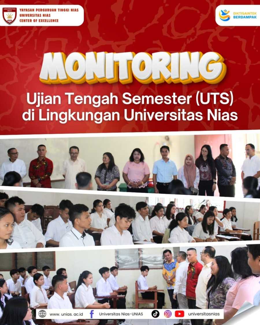 Universitas Nias.ac.id-Gunungsitoli: Dalam upaya menjaga dan meningkatkan mutu pelaksanaan proses akademik, Pimpinan Universitas Nias melaksanakan kegiatan monitoring pelaksanaan Ujian Tengah Semester (UTS) di lingkungan universitas. Kegiatan ini merupakan bagian dari komitmen universitas untuk memastikan seluruh proses evaluasi pembelajaran berjalan dengan tertib, objektif, dan berintegritas tinggi. Senin 27 Oktober 2025