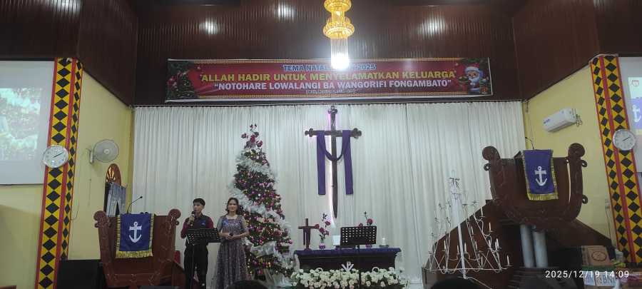 Perayaan Natal FKIP Tahun 2025 ini dilaksanakan pada hari Jumat, 19 Desember 2025 bertempat di Gereja Hosiana Jalan Yos Sudarso Kota Gunungsitoli. Adapun perayaan natal kali ini merupakan perpaduan program BEM, Maperwa dan HMPS FKIP Universitas Nias.