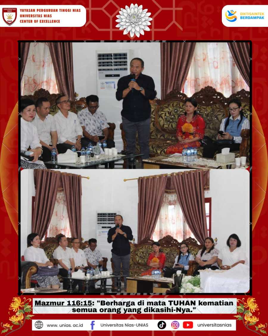 Universitas Nias. ac.id- Gunungsitoli: Pimpinan, dosen, dan pegawai Universitas Nias melaksanakan pelayatan sebagai bentuk belasungkawa atas wafatnya istri Wakil Bupati Nias. Senin 9 Maret 2026, bertempat di rumah dinas Wakil Bupati Nias.